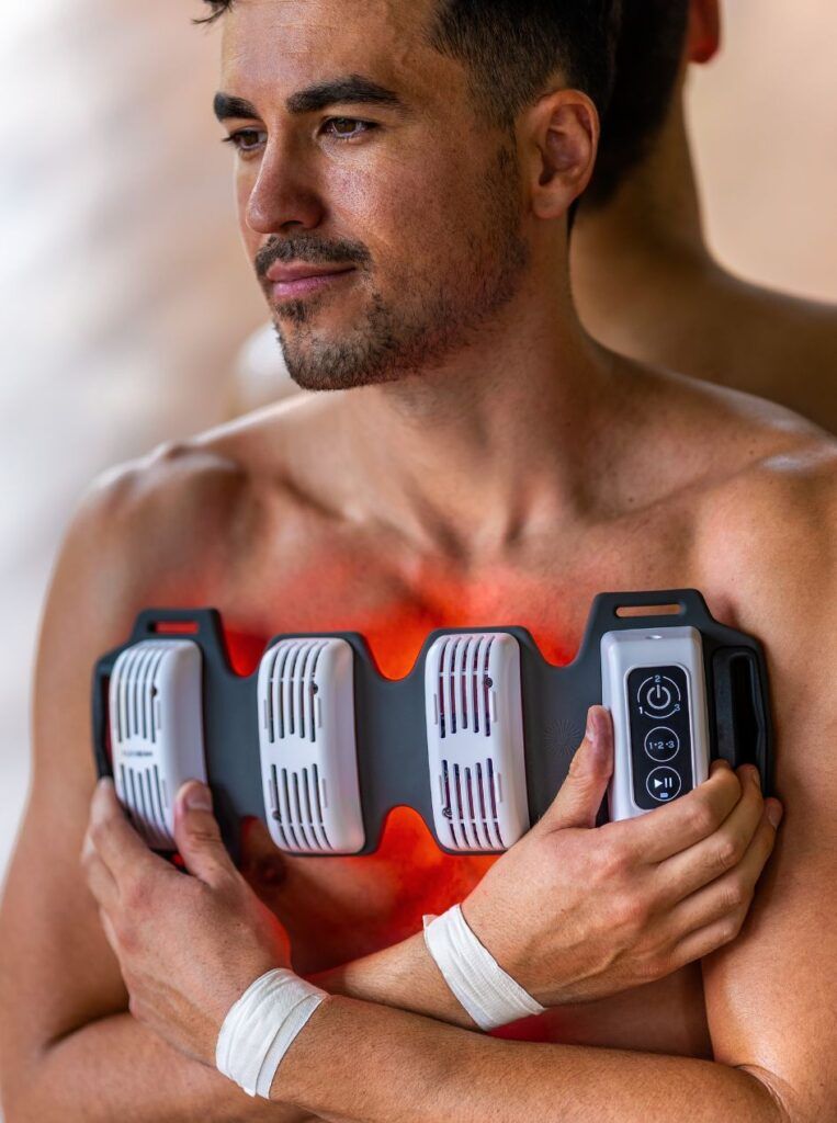 FlexBeam is a wearable device that employs red (625–635nm) and near-infrared (810–845nm) light wavelengths to deliver photobiomodulation (PBM) therapy directly to the body. This approach stimulates cellular processes, promoting healing and recovery.